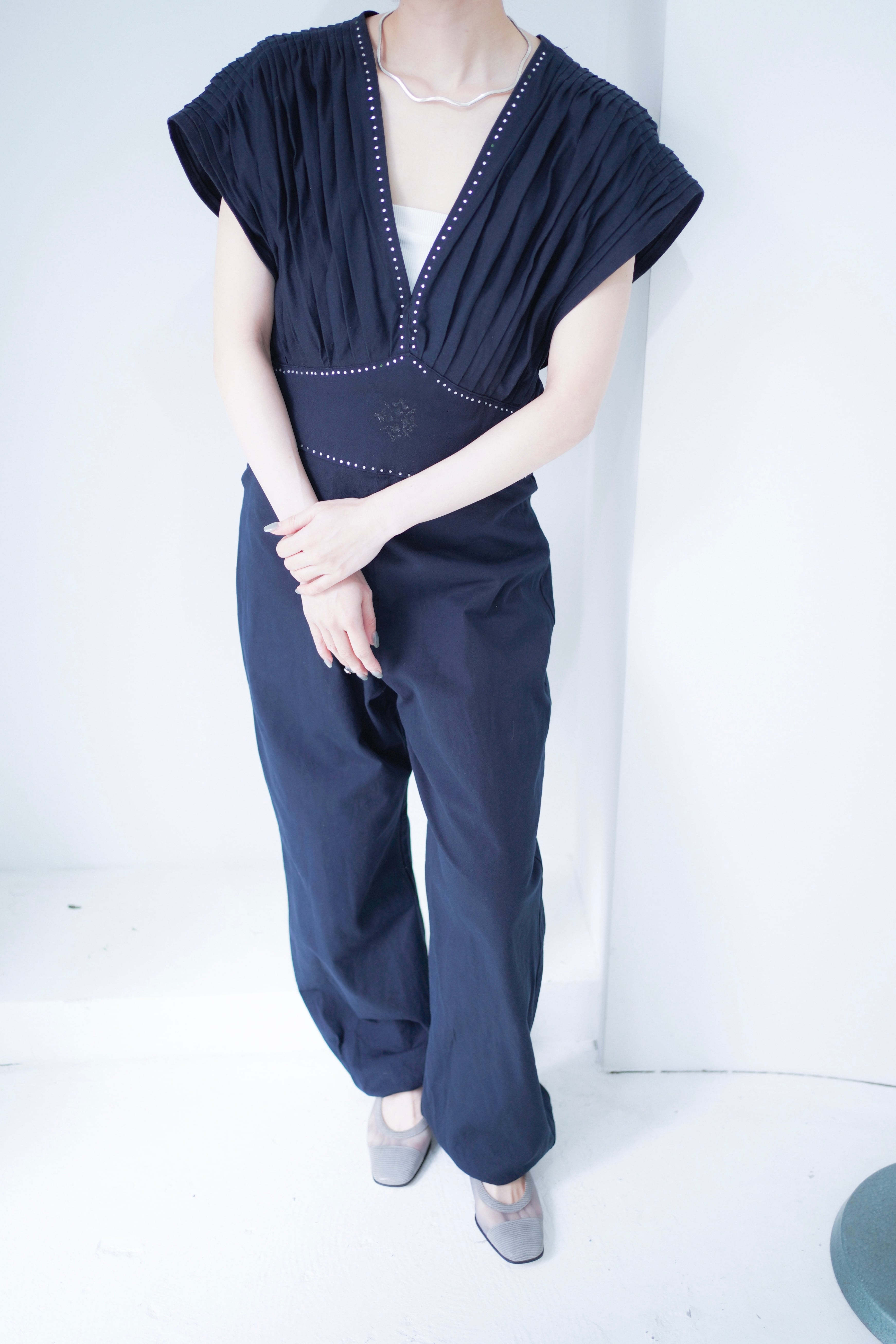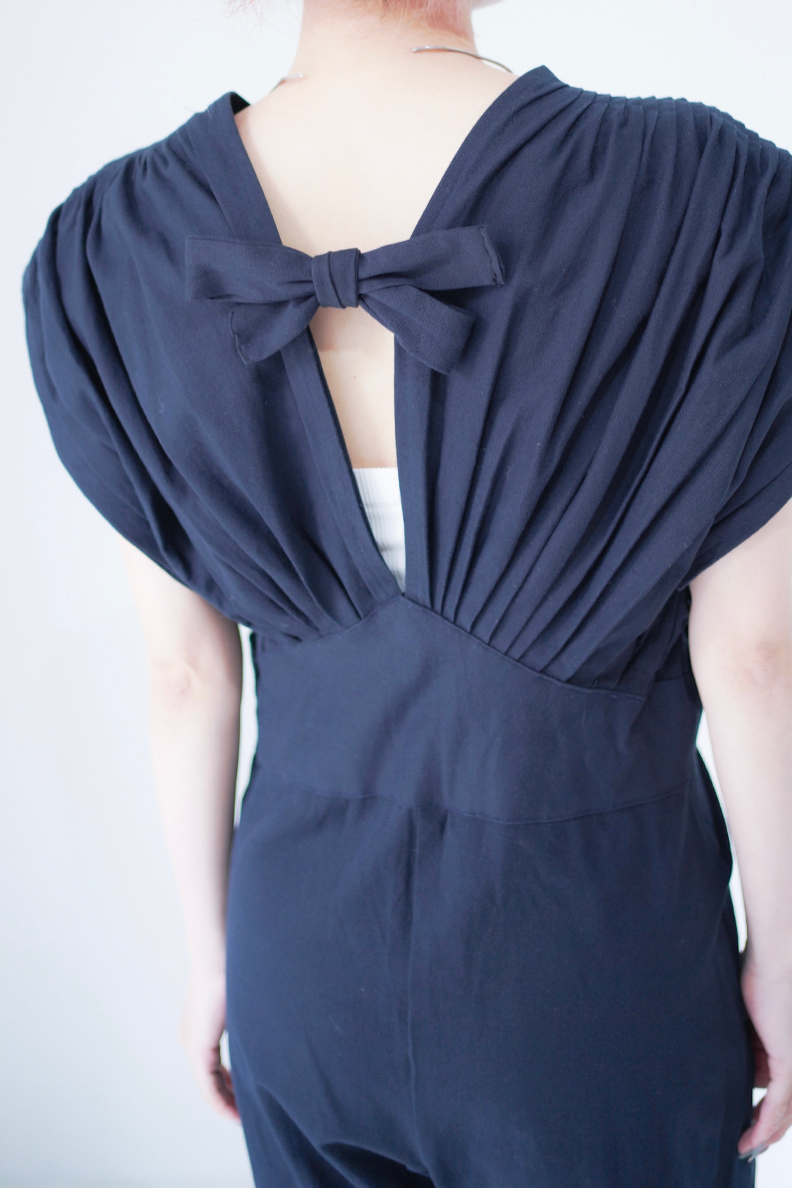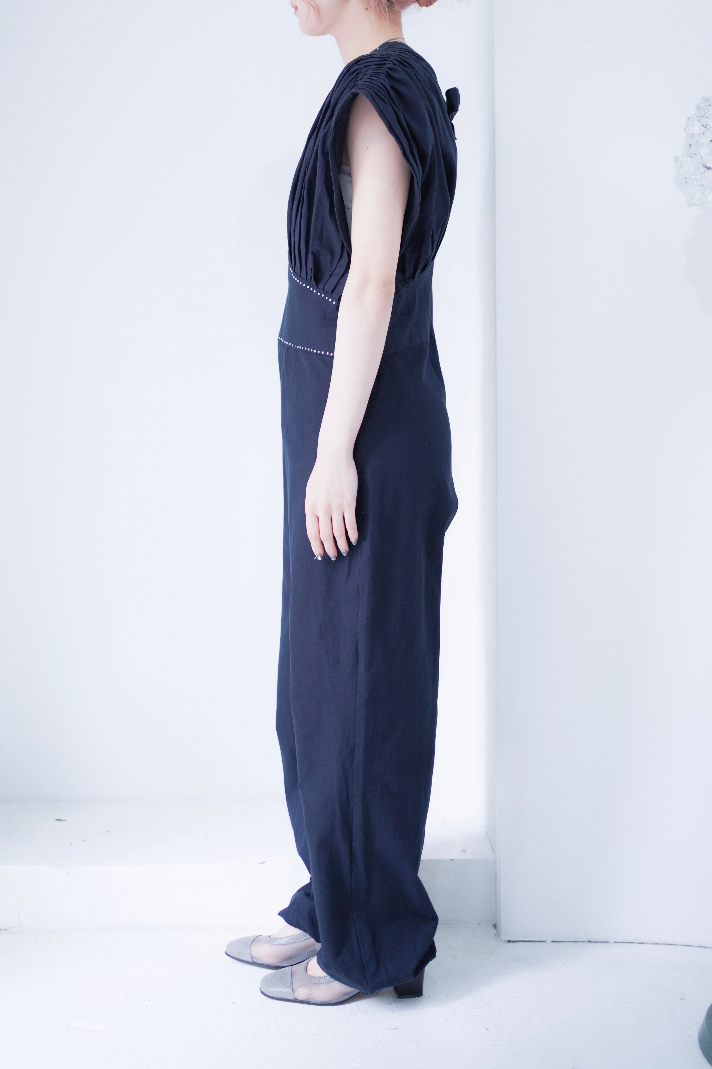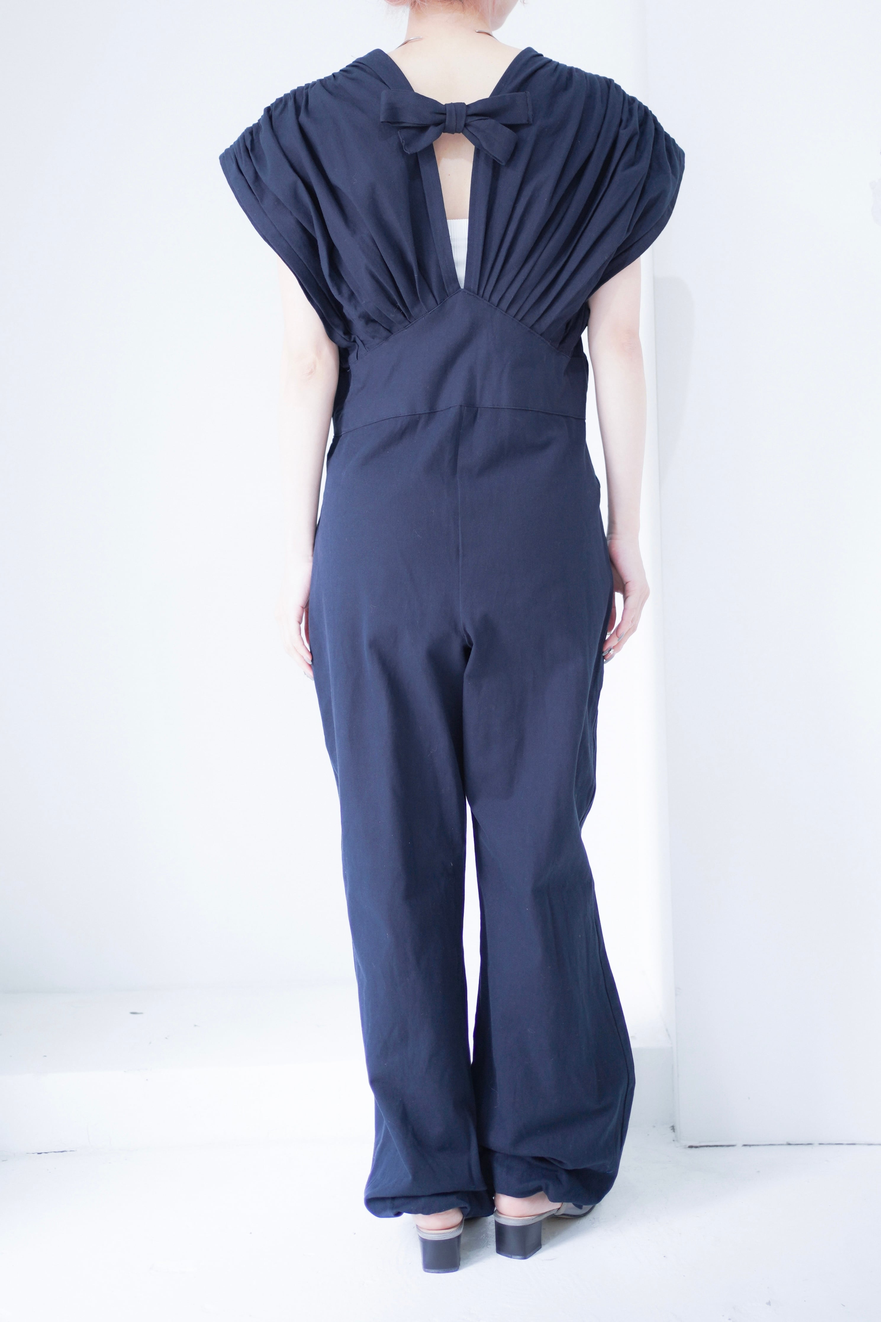 back ribbon pleats design jump suit