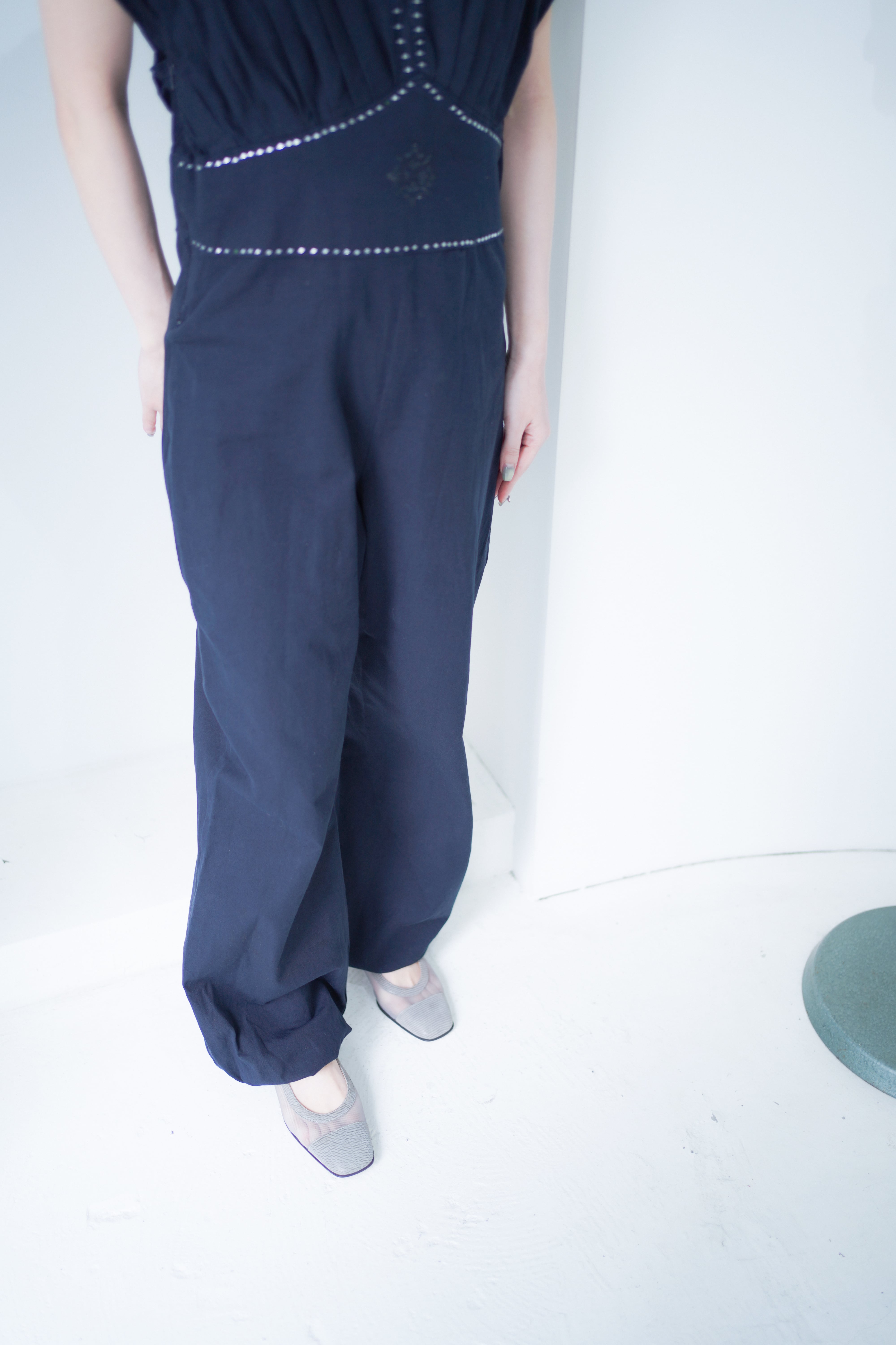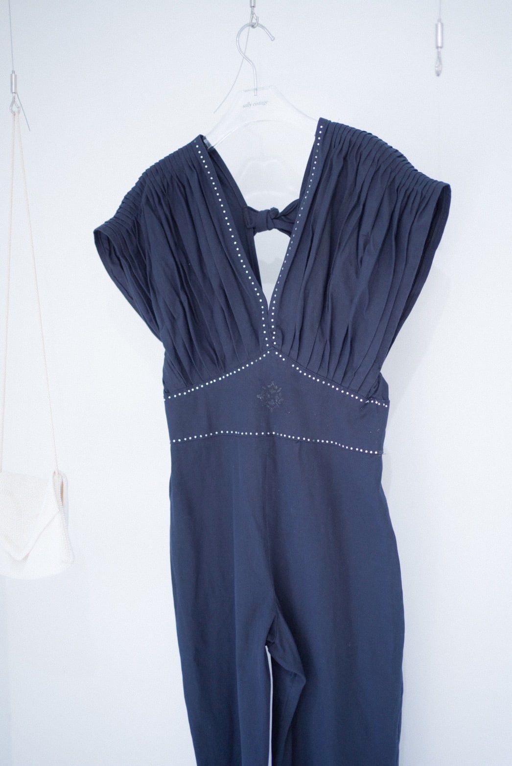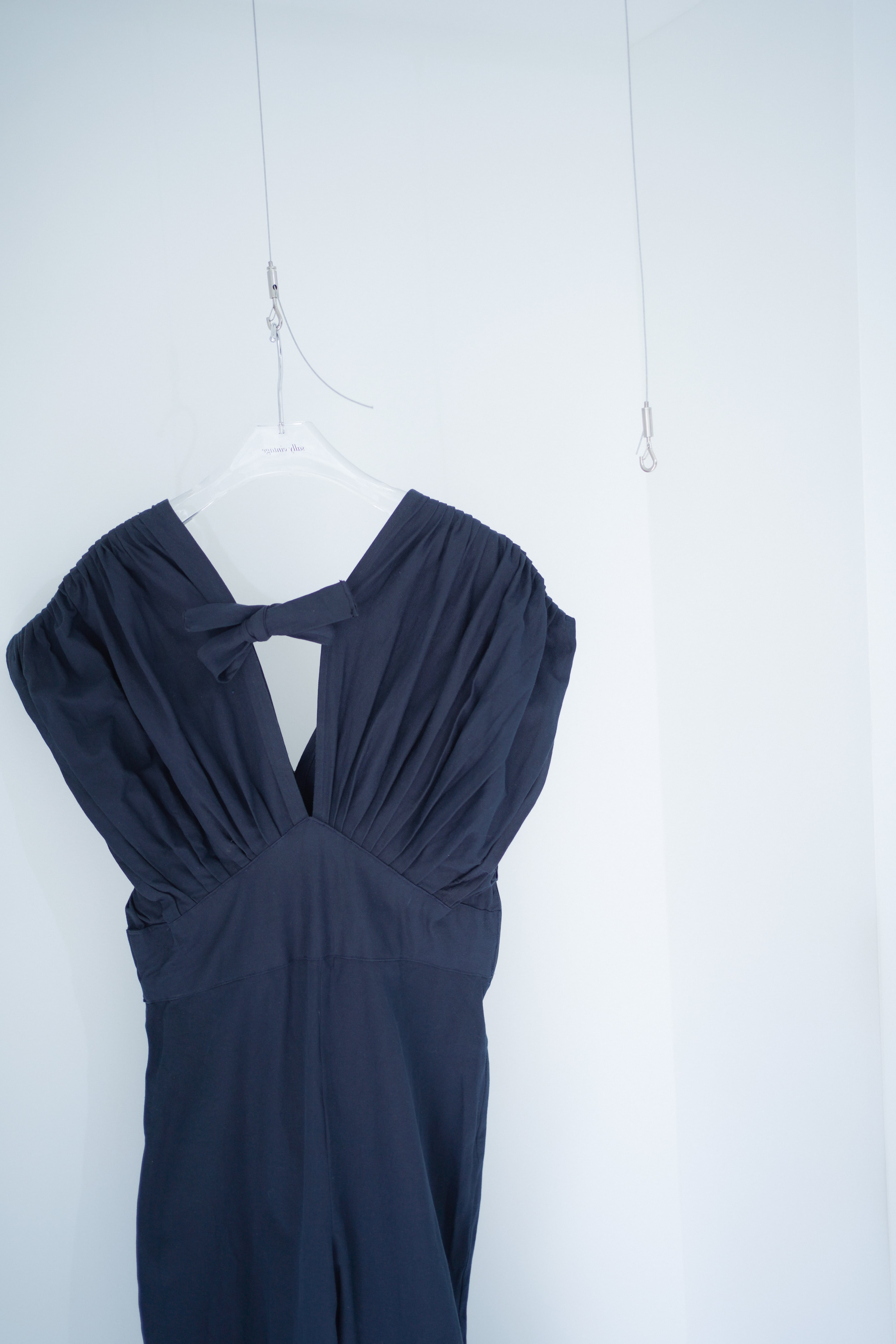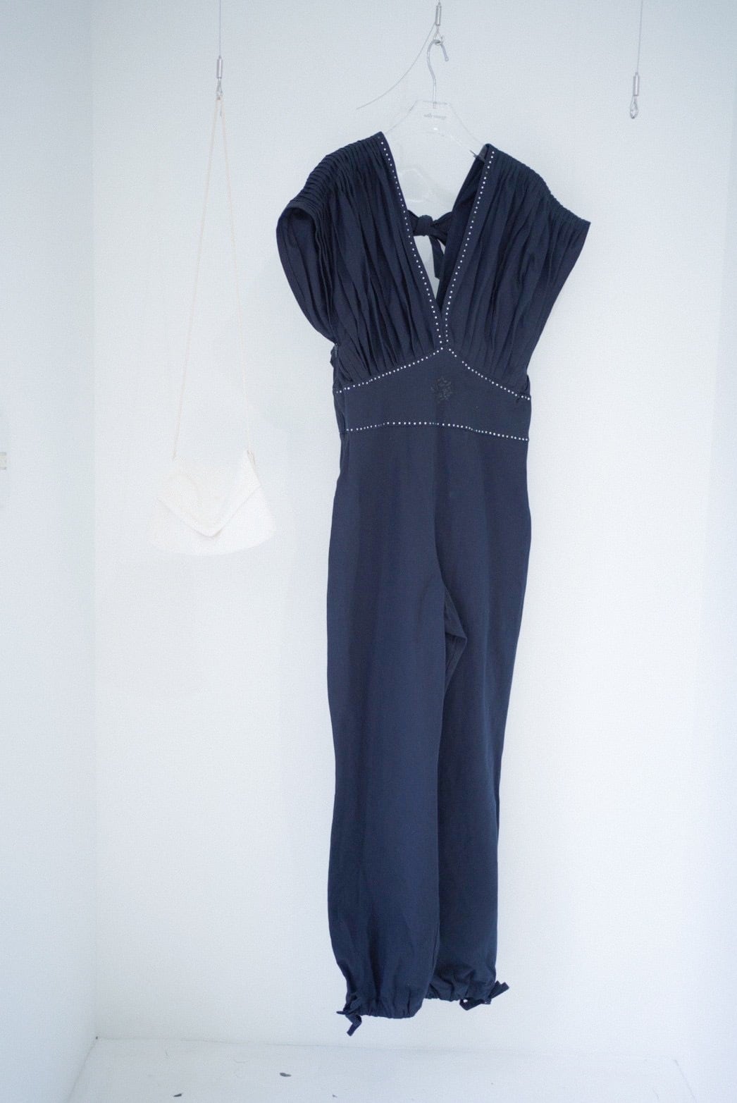 back ribbon pleats design jump suit
