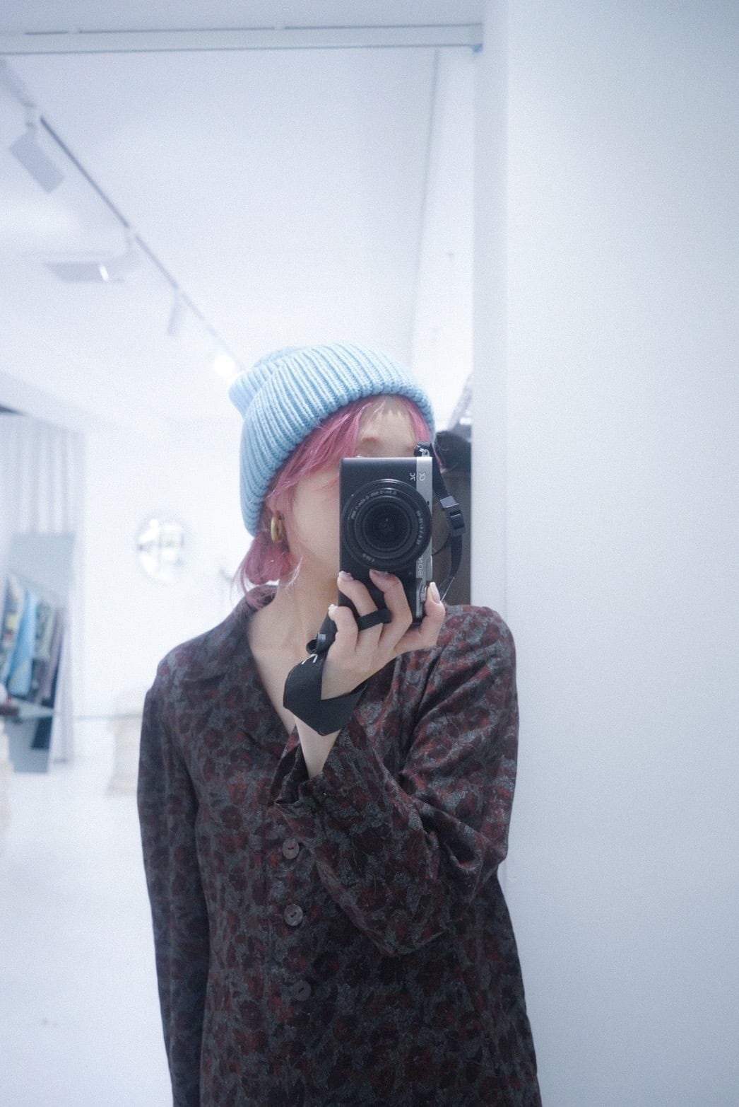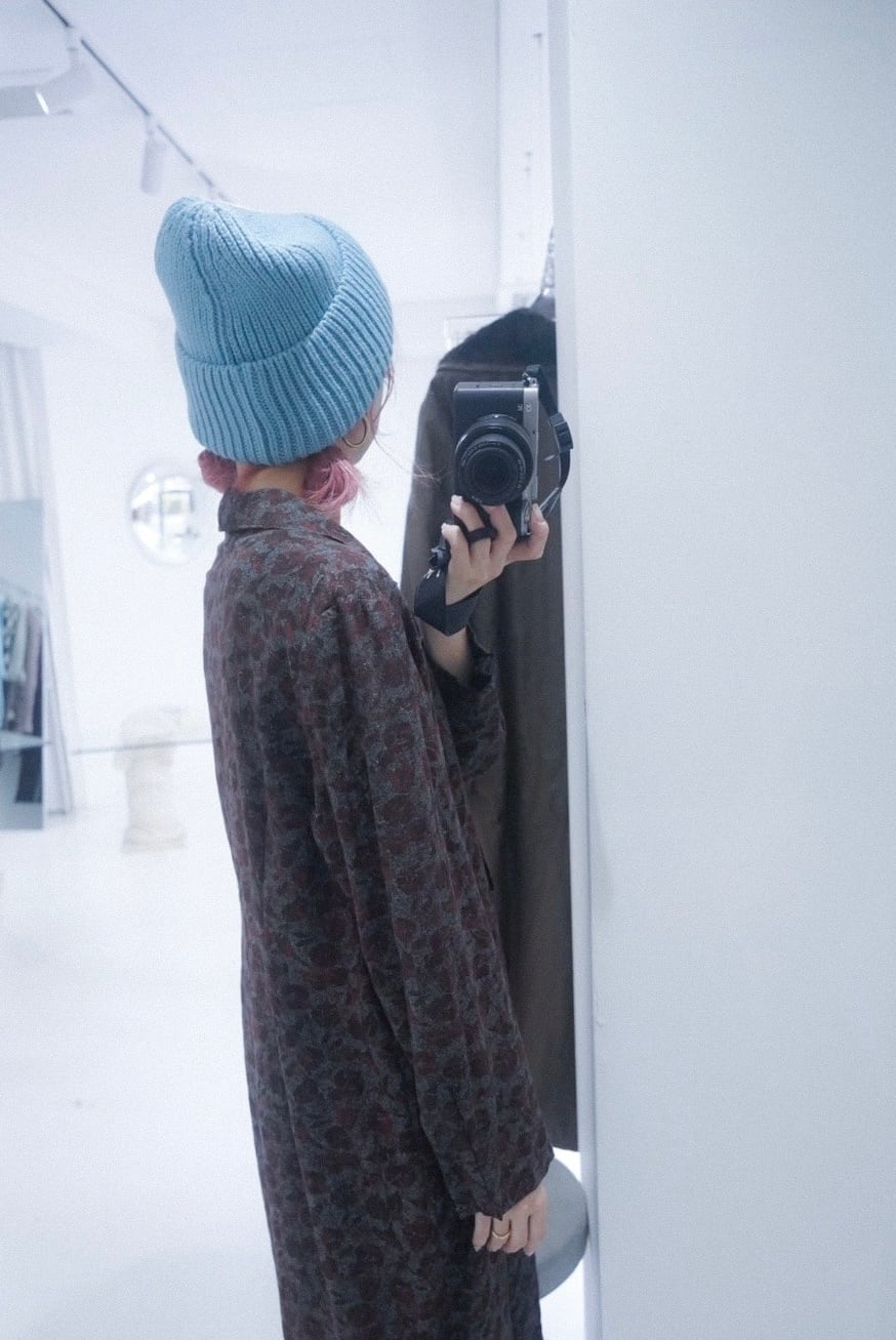 light blue knit cap