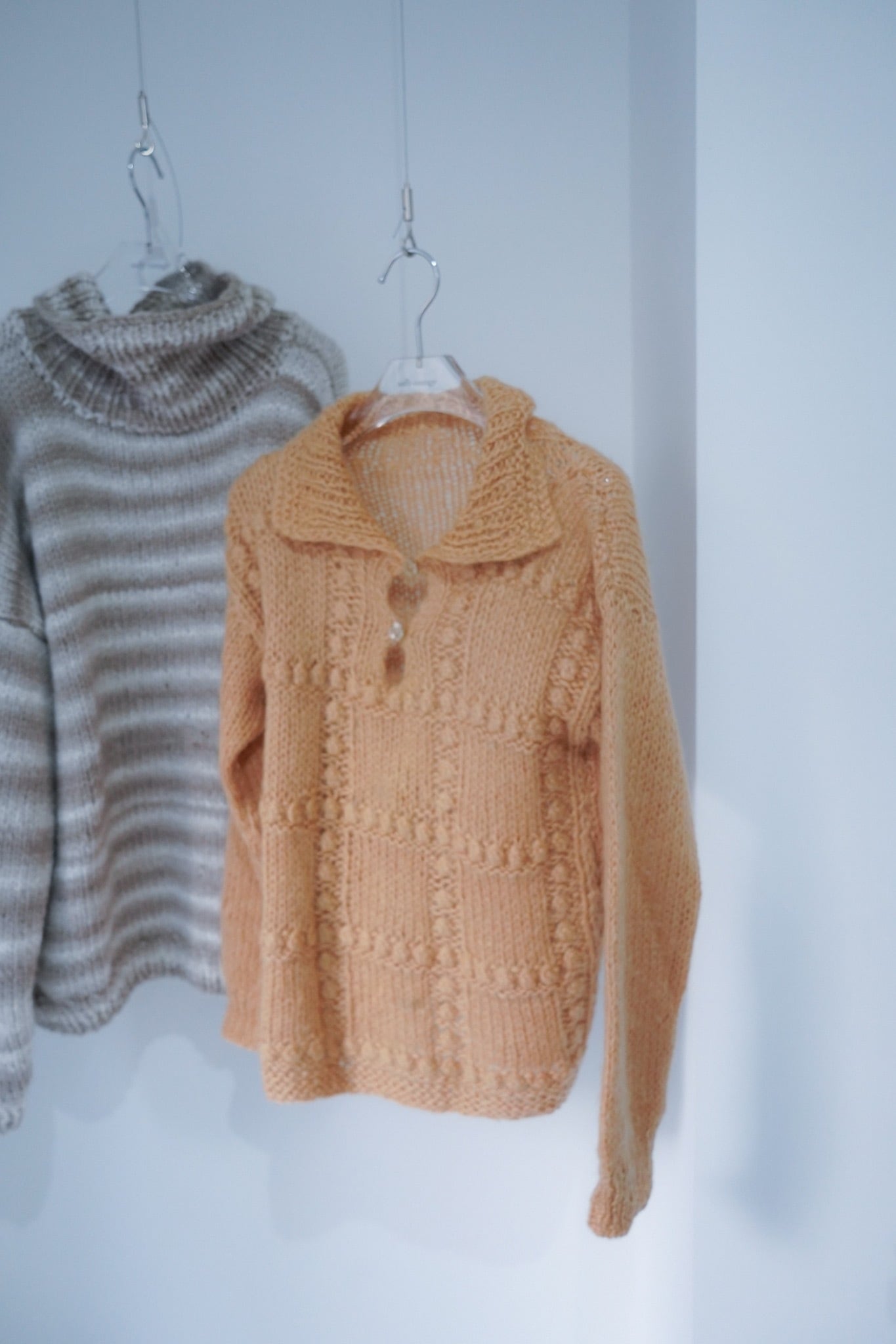 カラーのざっくりモヘアニット。