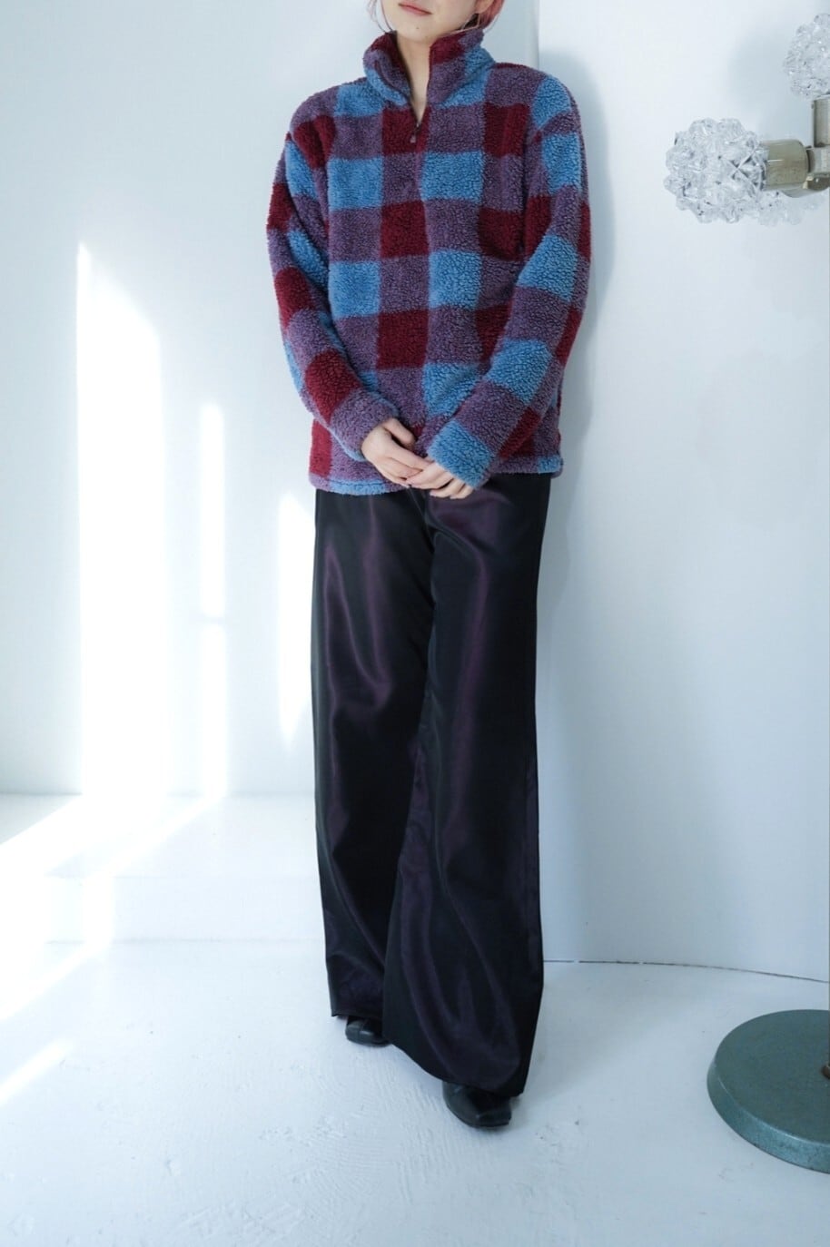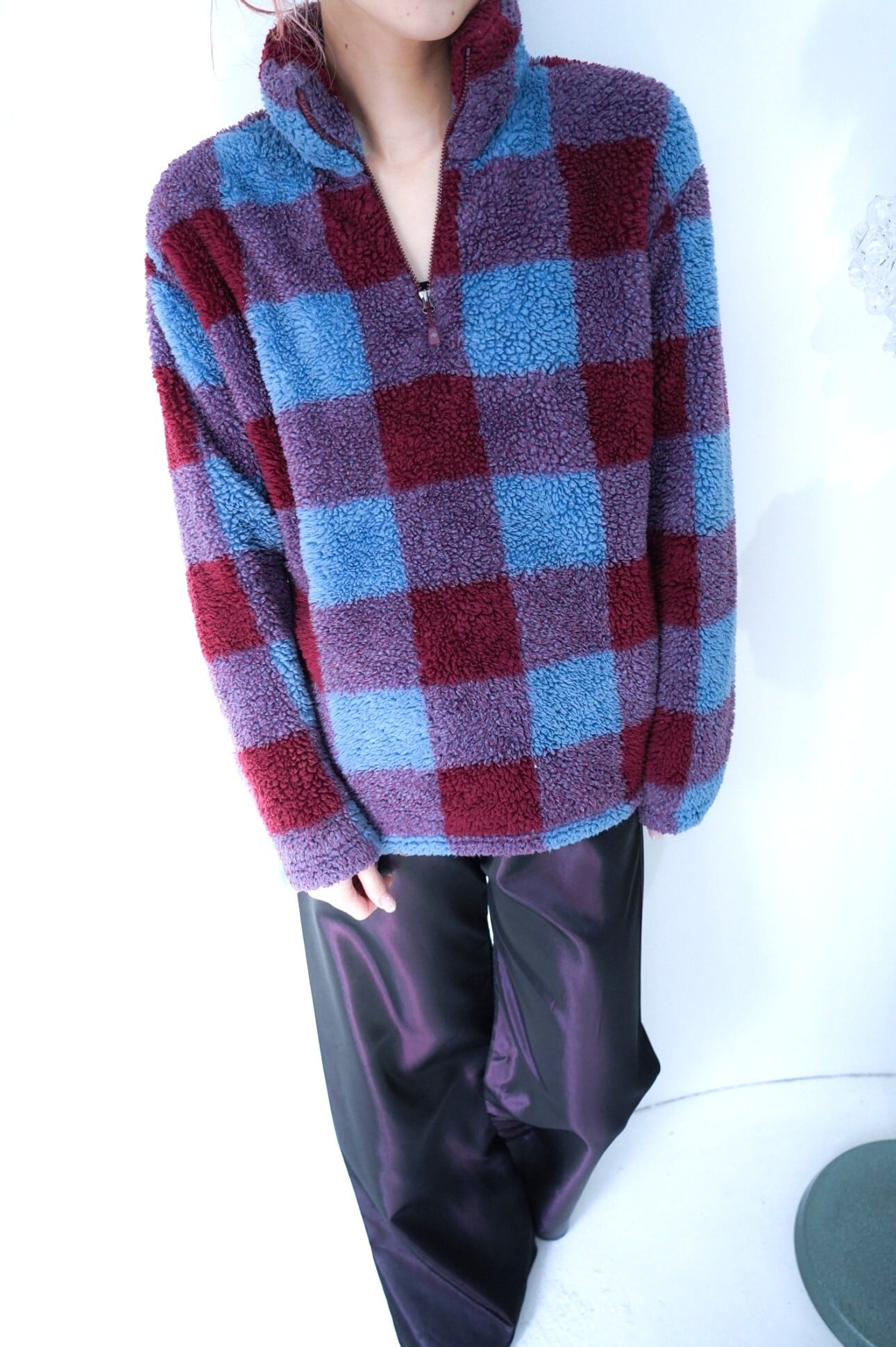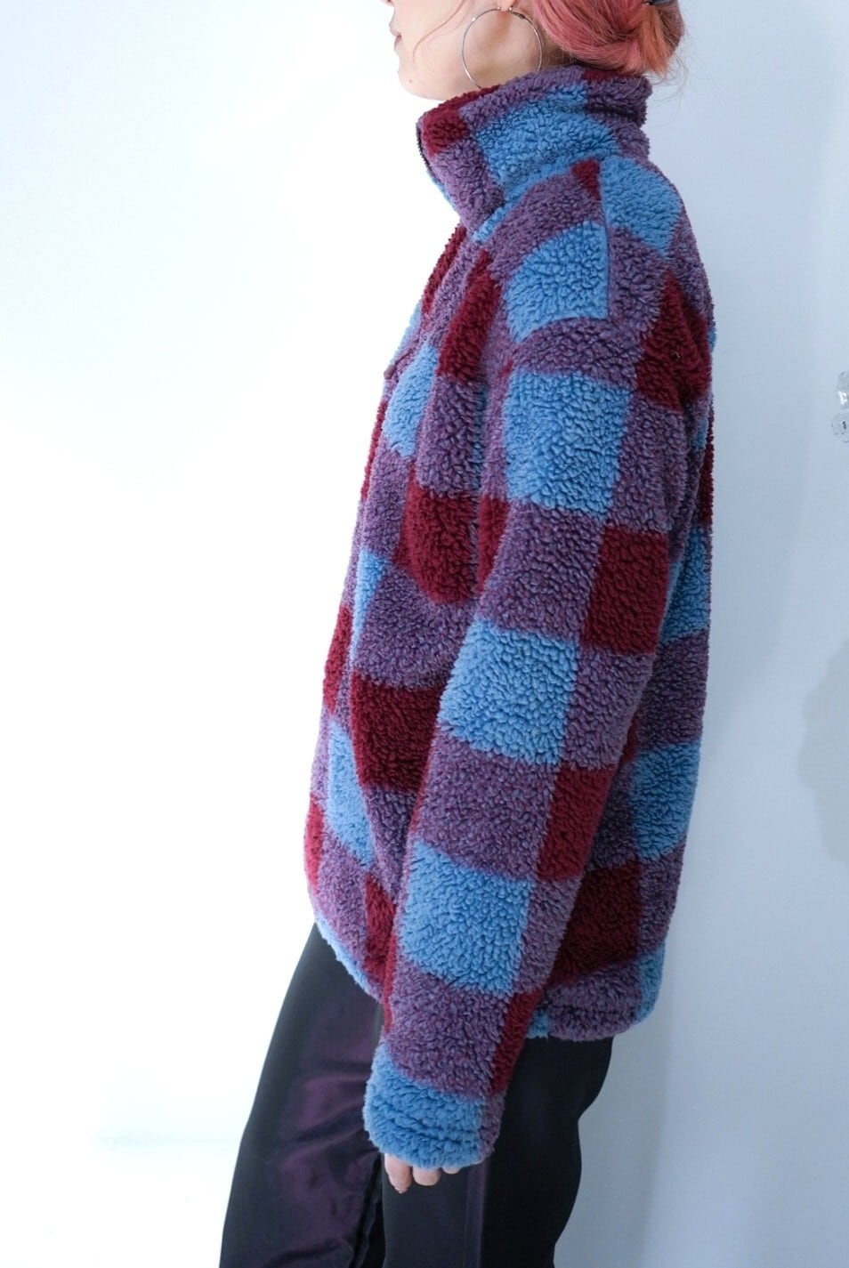 check boa fleece tops
